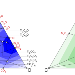 Above: Ternary convex hulls for the Ti-C-O system (left) and the Al-C-O system (right).Titanium and aluminium are materials with significant industrial applications, and worldwide production of these metals measures in the hundreds of millions of tons each year. Paired with carbon and oxygen, titanium and aluminium are known to form oxides and carb…